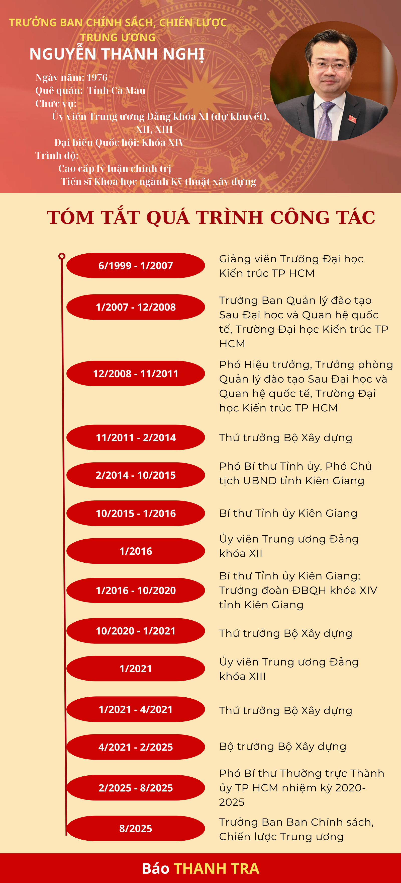 Chiều 25/8, Thường trực Ban Bí thư Trần Cẩm Tú đã trao Quyết định của Bộ Chính trị về việc điều động, phân công, bổ nhiệm ông Nguyễn Thanh Nghị, Ủy viên Trung ương Đảng, Phó Bí thư Thường trực TP HCM, giữ chức vụ Trưởng Ban Chính sách, chiến lược Trung ương.