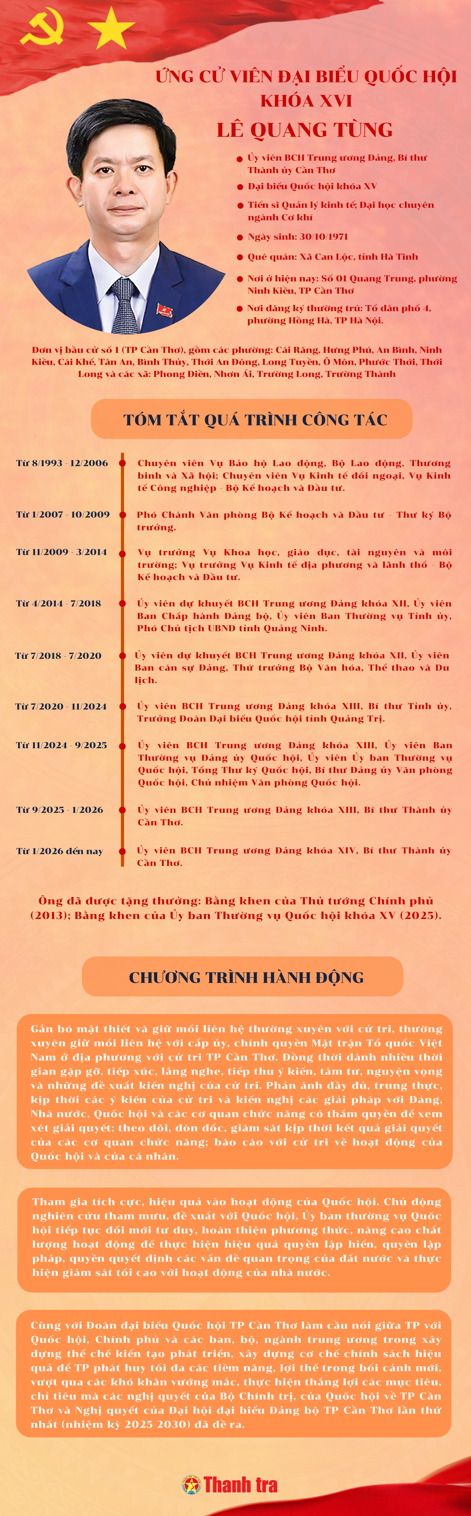 Tiểu sử và chương trình hành động của Bí thư Thành ủy Cần Thơ Lê Quang Tùng