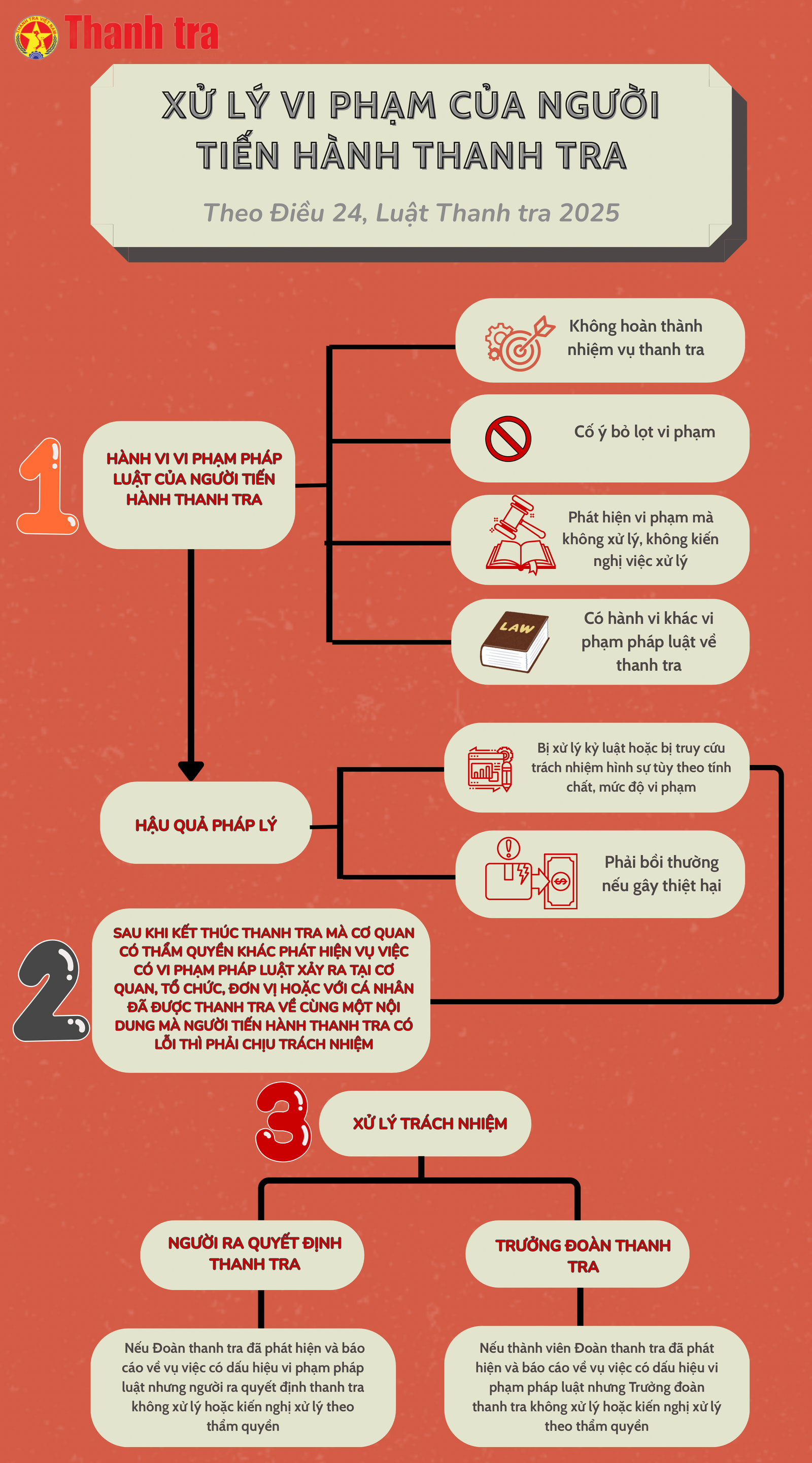 (Thanh tra) - Luật Thanh tra 2025 đã thiết lập cơ chế xử lý nghiêm với mọi hành vi vi phạm pháp luật của người tiến hành thanh tra, qua đó bảo đảm tính khách quan, nghiêm minh của hoạt động thanh tra.