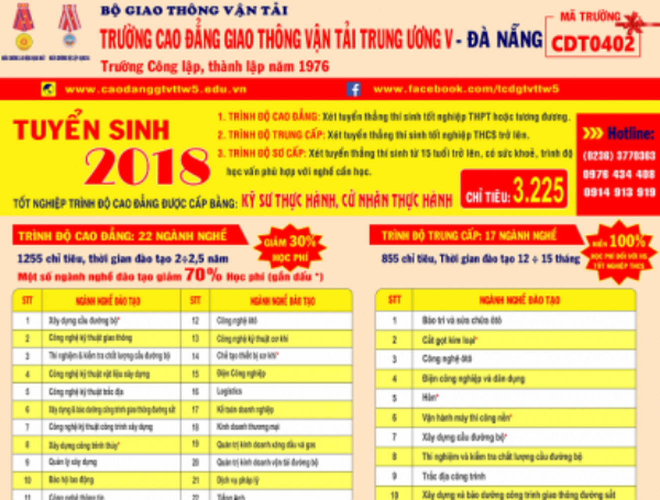 Thông tin về tuyển sinh tại trường. Ảnh: http://www.caodanggtvttw5.edu.vn