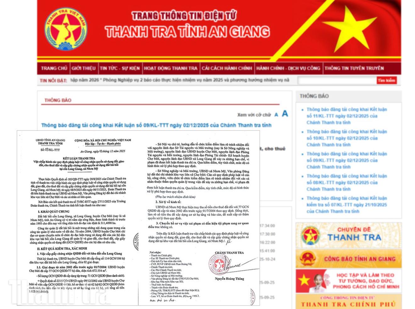 Kết luận thanh tra số 09/KL-TTT ngày 2/12/2025 đã được Thanh tra tỉnh An Giang công khai. Ảnh: Cảnh Nhật