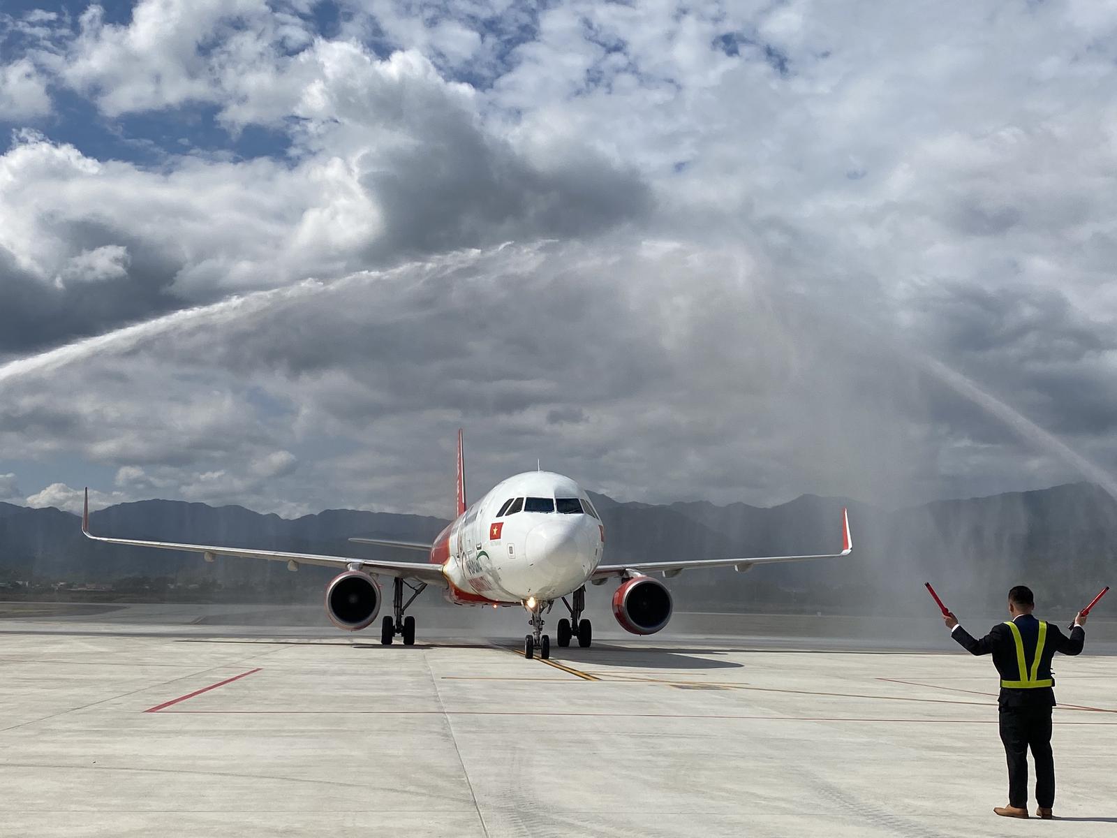 Ngày 2/12/2023, Cảng Hàng không Điện Biên đã hoạt động trở lại và đón những chuyến bay thương mại đầu tiên bằng máy bay cỡ lớn, hiện đại Airbus A320 và A321. Ảnh: ACV