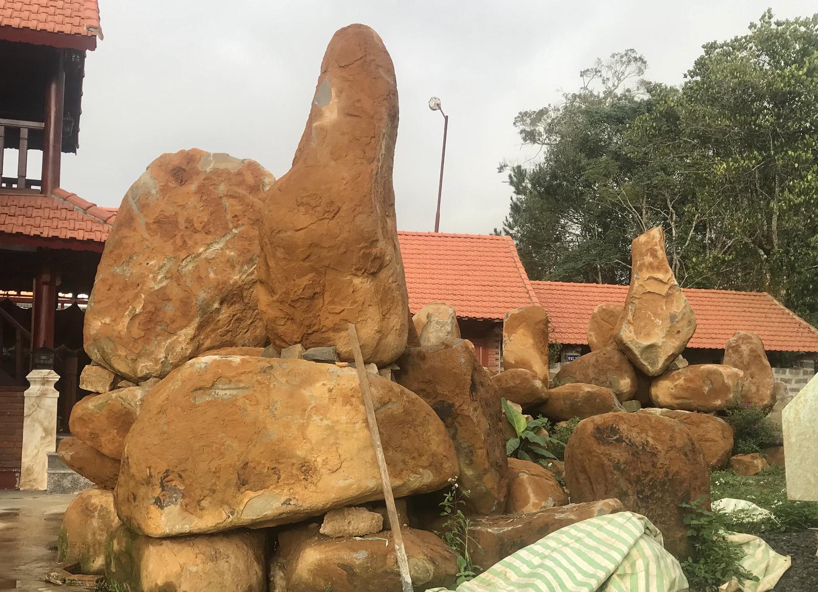 Phía sau nhà hàng cơm niêu là khu vực trang trí đá cảnh. Ảnh: N.P