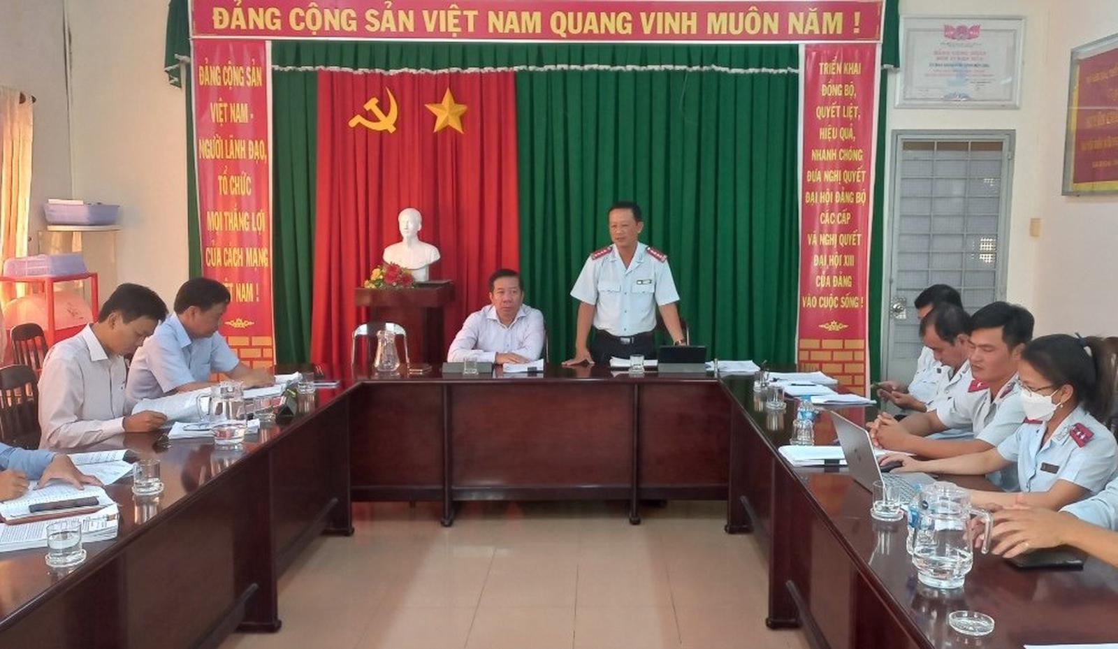 Chánh Thanh tra tỉnh Bến Tre phát biểu tại buổi công bố kết luận thanh tra tại huyện Châu Thành. Ảnh: Thanh tra tỉnh Bến Tre