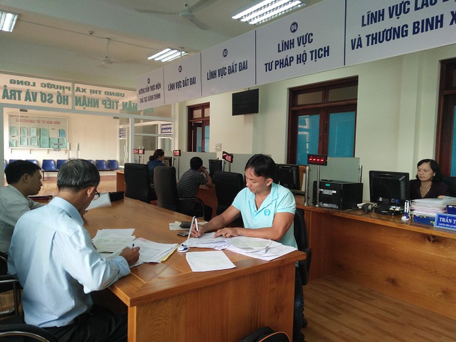 Người dân thực hiện TTHC tại bộ phận một cửa thị xã Phước Long. Ảnh: phuoclong.binhphuoc.gov.vn