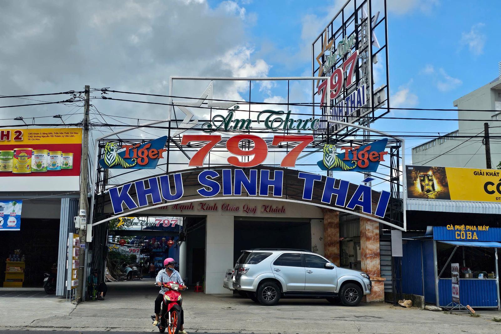 Tương tự, theo Kết luận thanh tra số 02/KL-TTr ngày 5/6/2025, DNTN Ẩm thực sinh thái 797 (do ông Nguyễn Đình Cần làm chủ) hoạt động trên hai thửa đất, trong đó có 150 m² đất ở và 1.809,7 m² đất nông nghiệp. Khu đất hiện có các hạng mục như Khu VIP 1 và VIP 2 với kết cấu bê tông cốt thép hai tầng (khoảng 22 phòng), khu nhà nghỉ nhân viên, khu bàn ăn trên hồ, khu bếp và các hạng mục phụ trợ khác.