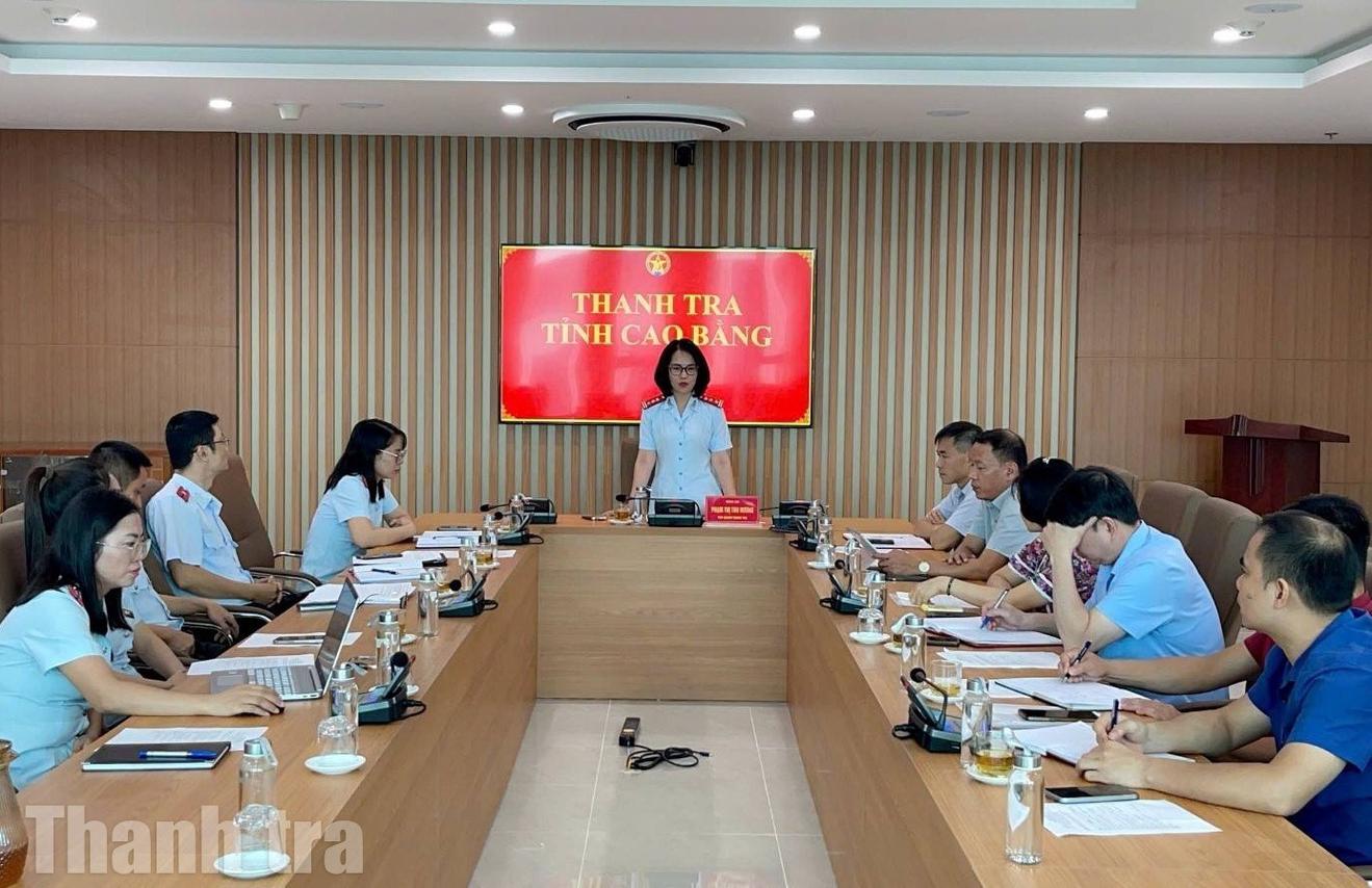 Bà Phạm Thị Thu Hương, Phó Chánh Thanh tra tỉnh Cao Bằng chỉ đạo tại buổi công bố quyết định thanh tra. Ảnh: Hà Duy