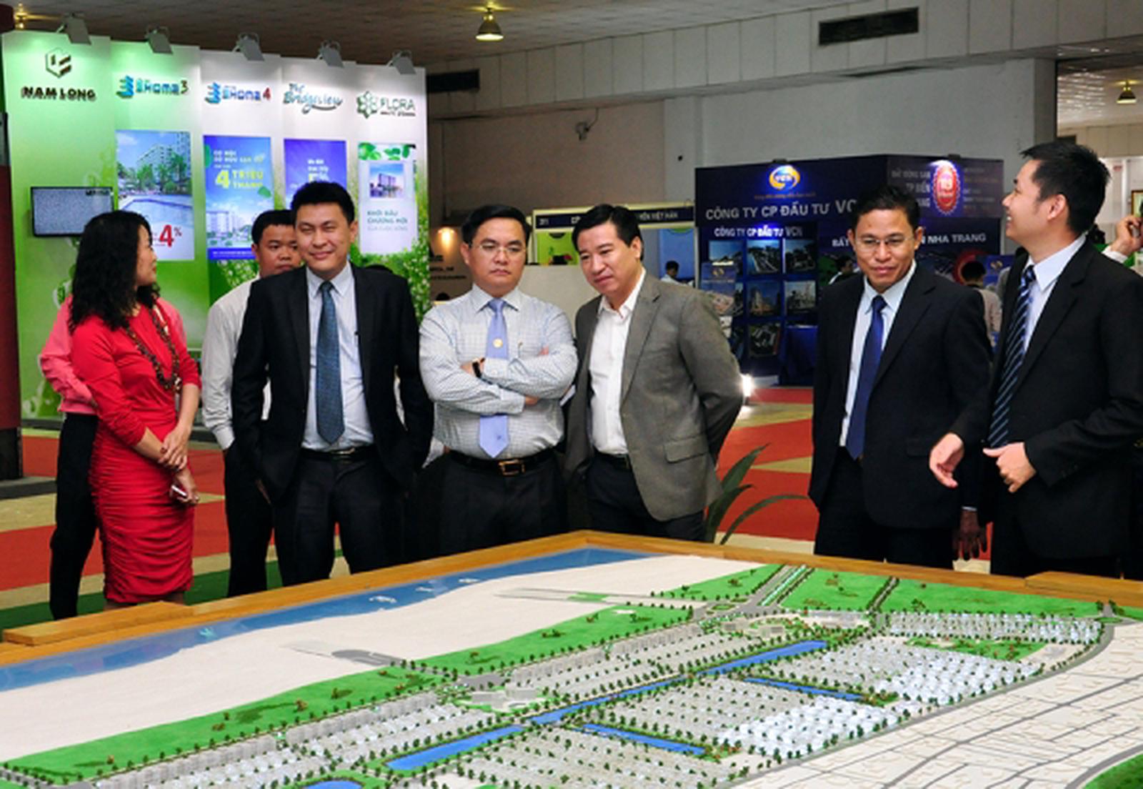 Giám đốc Sở Xây dựng Trần Trọng Tuấn (người khoanh tay) cùng Giám đốc các dự án bất động sản tại TP Hồ Chí Minh. Ảnh: GT