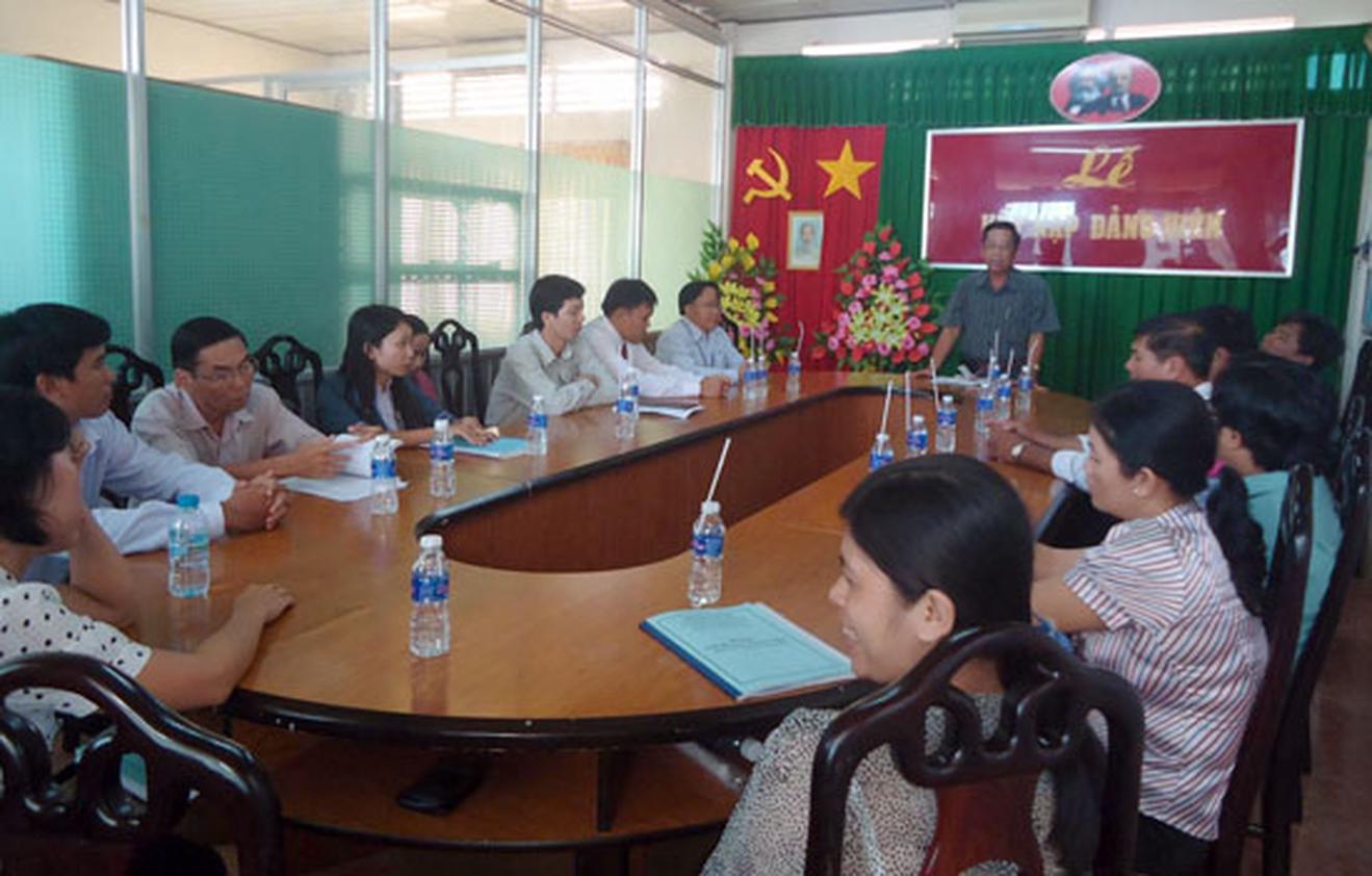 Chi bộ Trường Trung cấp Kinh tế - Kỹ thuật Hậu Giang tổ chức lễ kết nạp đảng viên. Ảnh: Internet