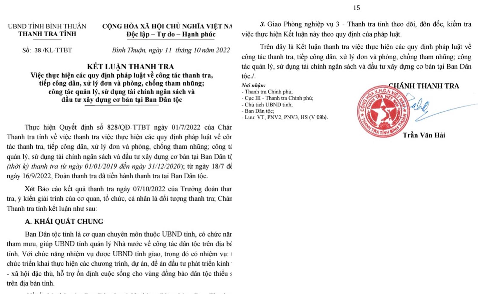 Kết luận thanh tra của Thanh tra tỉnh Bình Thuận. Ảnh: NN