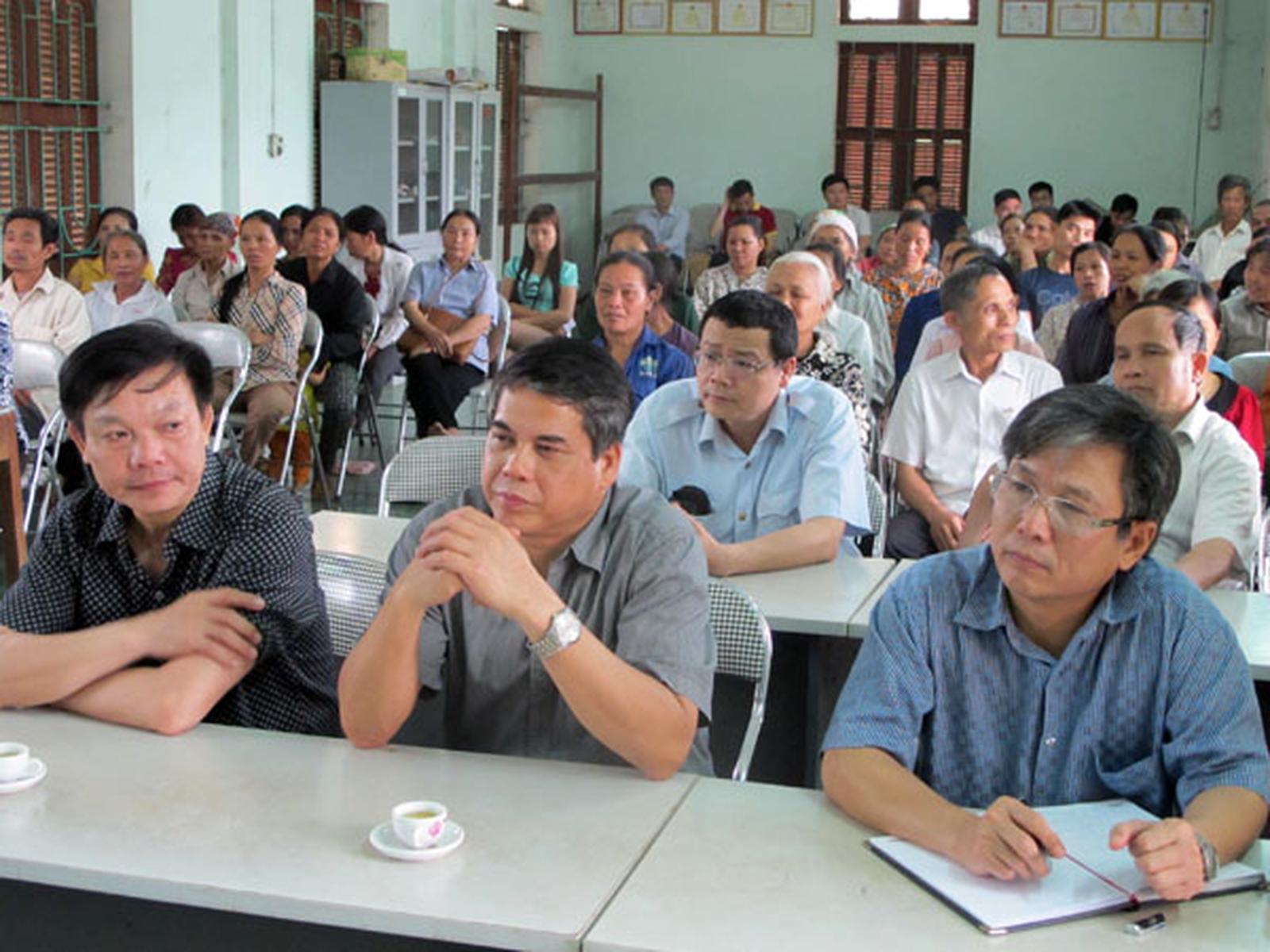 Chủ tịch UBND huyện và Thanh tra huyện Lương Sơn đã về thôn Gò Mu thông báo kết luận thanh tra và trực tiếp đối thoại với dân.
