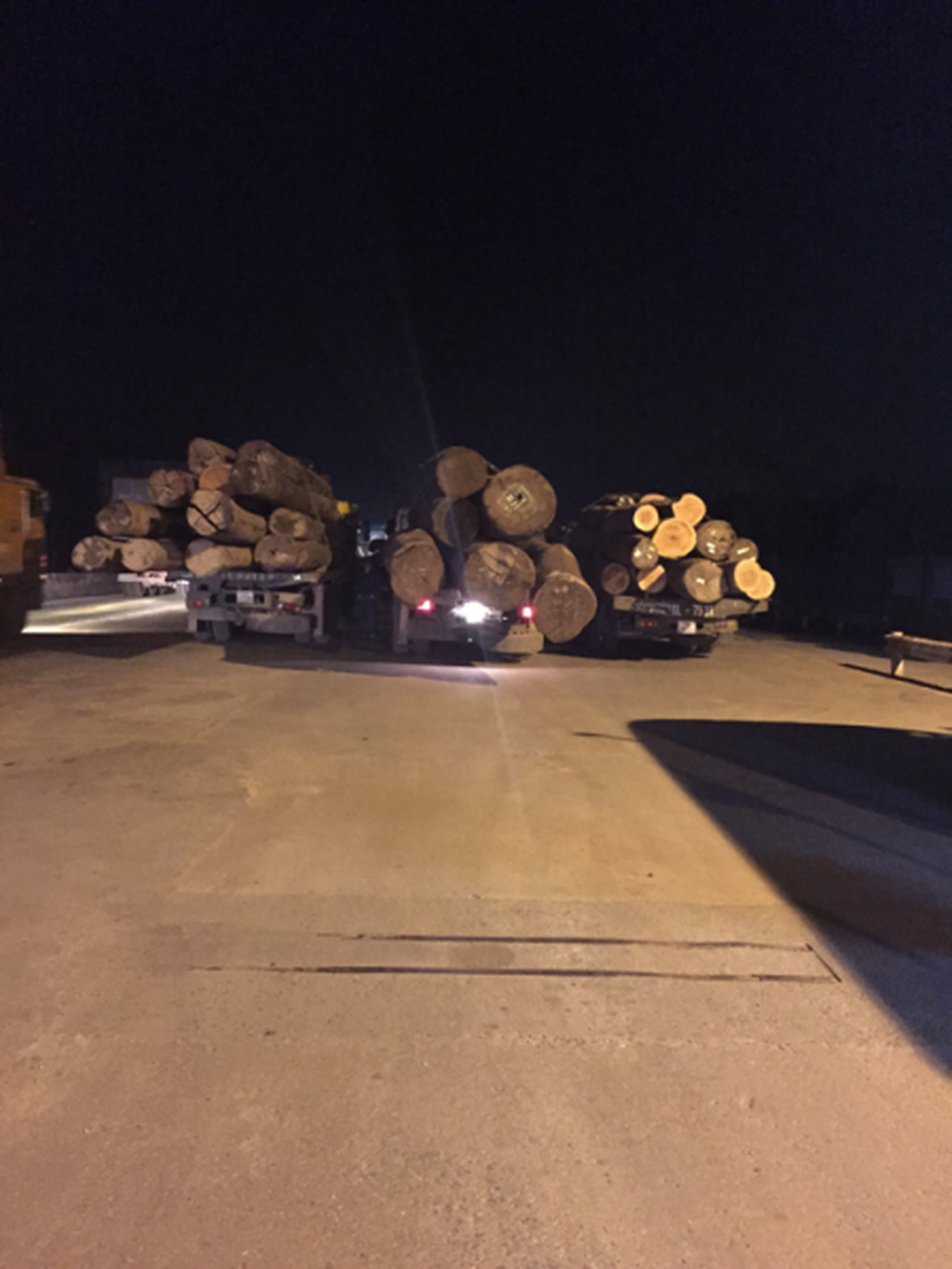 Một đoàn xe chở gỗ quá tải bị xử lý đưa về bãi. Ảnh: Hữu Oanh