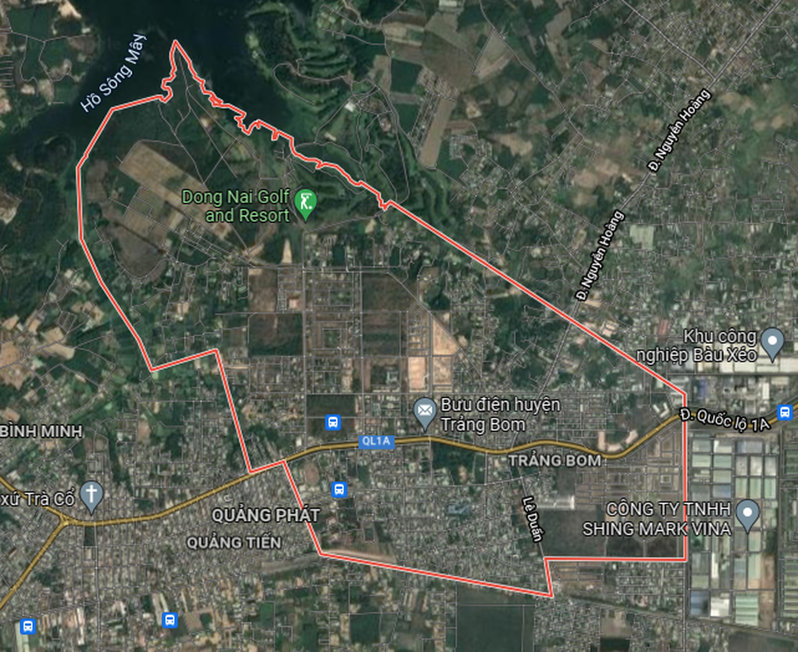 Thị trấn Trảng Bom nhìn từ ảnh bản đồ Google vệ tinh