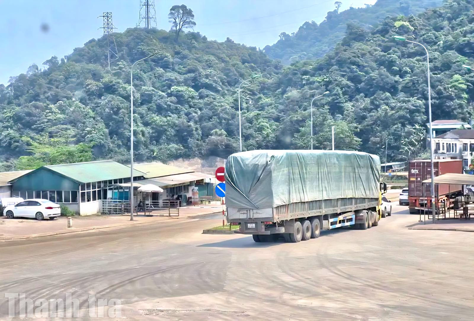 Xe chờ thông quan tại Cửa khẩu Cầu Treo. Ảnh: LHC