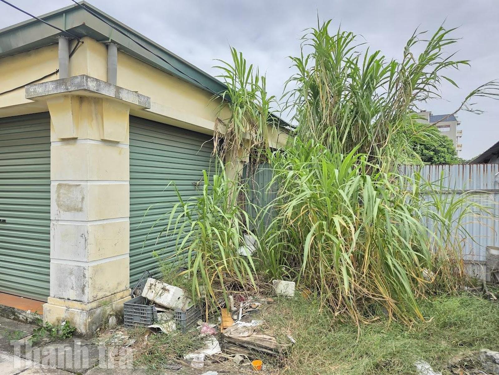 Hiện nay, nhiều hạng mục bên trong chợ trở thành điểm tập kết phế liệu và để cỏ dại mọc. Ảnh: Trọng Tài