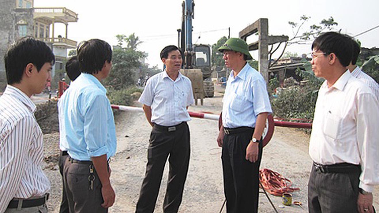 Chủ tịch UBND tỉnh Đoàn Hồng Phong(thứ 2 từ phải sang) kiểm tra tiến độ dự án. Ảnh: namdinh.gov.vn