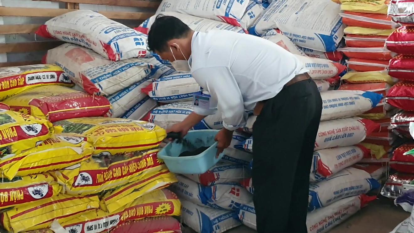 Lực lượng chức năng lấy mẫu phân bón để kiểm tra, phân tích. Ảnh: MH