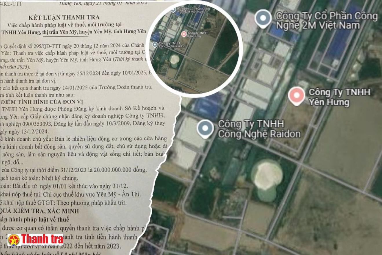 (Thanh tra) - Thanh tra tỉnh Hưng Yên vừa công bố kết luận thanh tra về việc chấp hành pháp luật về thuế và môi trường tại Công ty TNHH Yên Hưng (Công ty Yên Hưng), có trụ sở tại thị trấn Yên Mỹ, huyện Yên Mỹ. Kết luận không chỉ chỉ ra sai phạm về thuế mà còn nhấn mạnh các tồn tại trong công tác bảo vệ môi trường của doanh nghiệp.