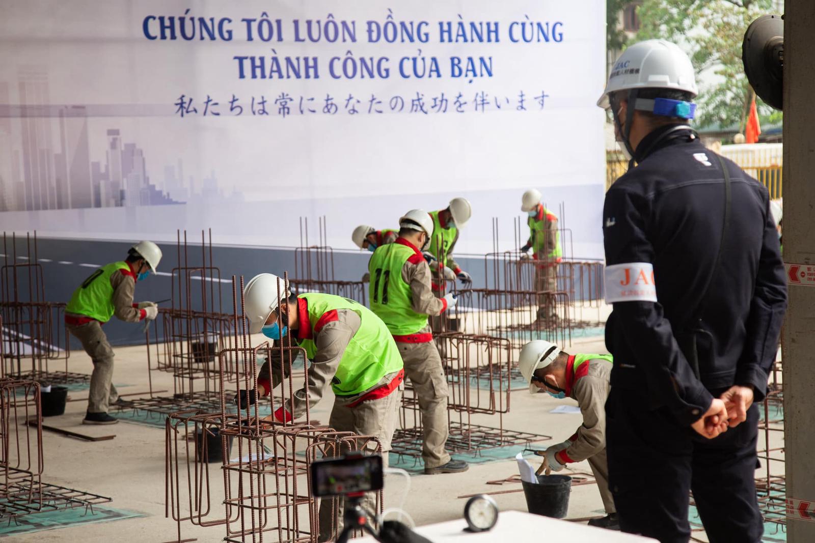Sinh viên tham dự kỳ thi đánh giá kỹ năng đặc định số 1 do Trường Cao đẳng Xây dựng số 1 phối hợp cùng EK Group tổ chức lần đầu tiên tại Việt Nam. Ảnh: TQ