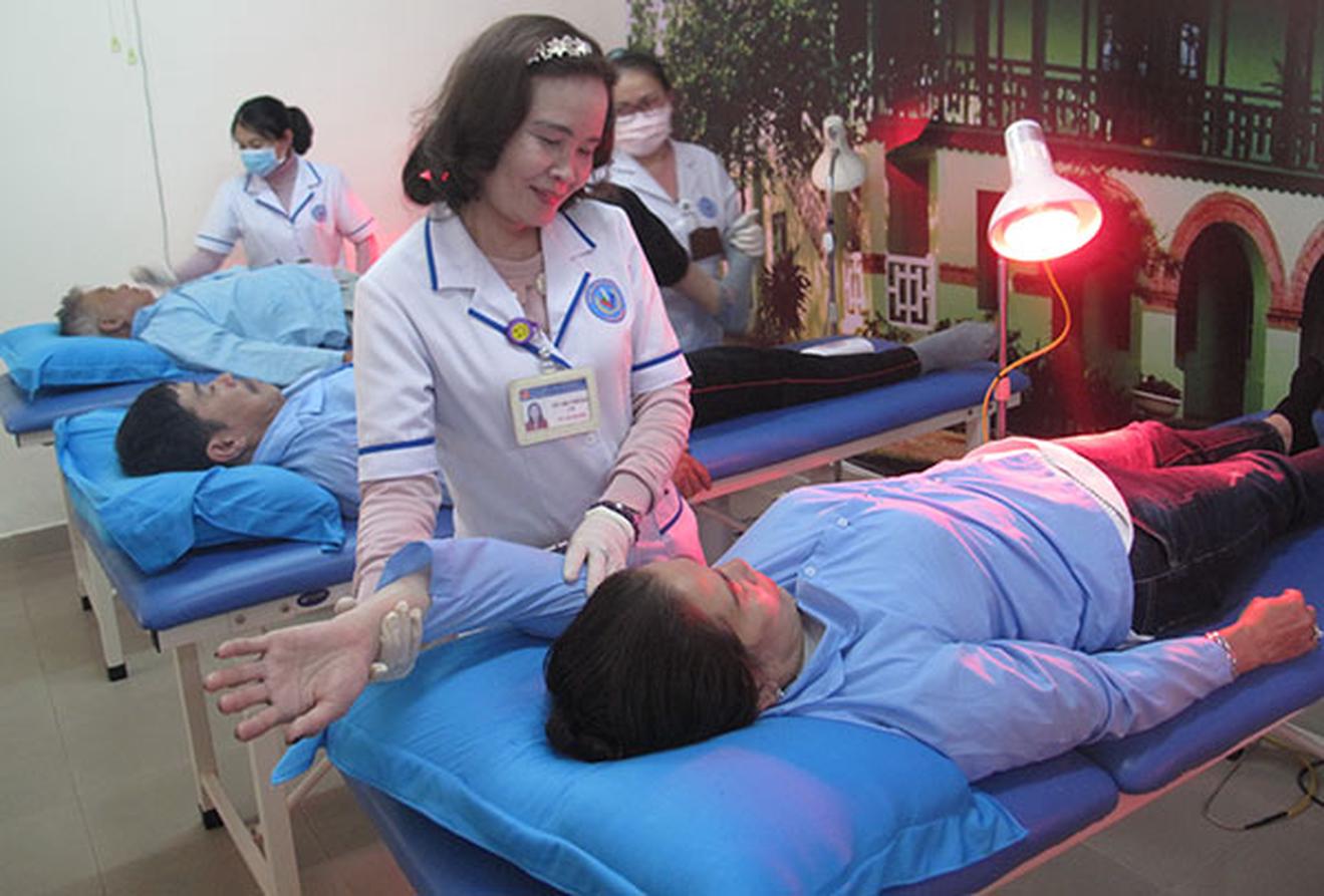 Chiếu đèn tập vật lý trị liệu phục hồi chức năng cho bệnh nhân tại Bệnh viện Phục hồi chức năng tỉnh. Ảnh: An Nhiên/Báo Lâm Đồng