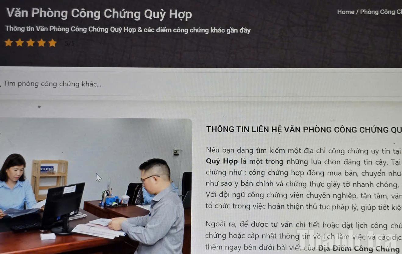 Văn phòng công chứng Nghệ An đăng thông tin liên hệ về văn phòng trên mạng Internet. Ảnh: Văn Thanh