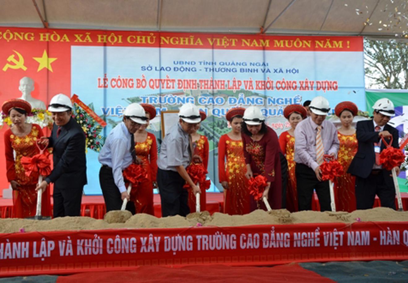 Ngày 29/4/2014, UBND tỉnh Quảng Ngãi công bố quyết định thành lập và khởi công xây dựng Trường Cao đẳng Nghề Việt Nam - Hàn Quốc tại Quảng Ngãi, với tổng vốn đầu tư gần 270 tỷ đồng. Ảnh: http://dantri.com.vn