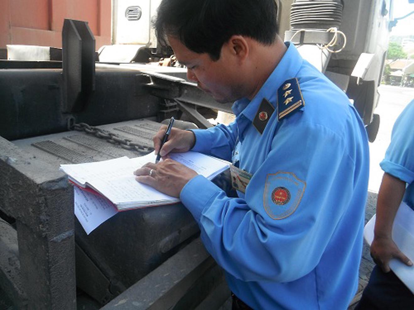 Thanh tra GTVT lập biên bản xử lý vi phạm. Ảnh: OH