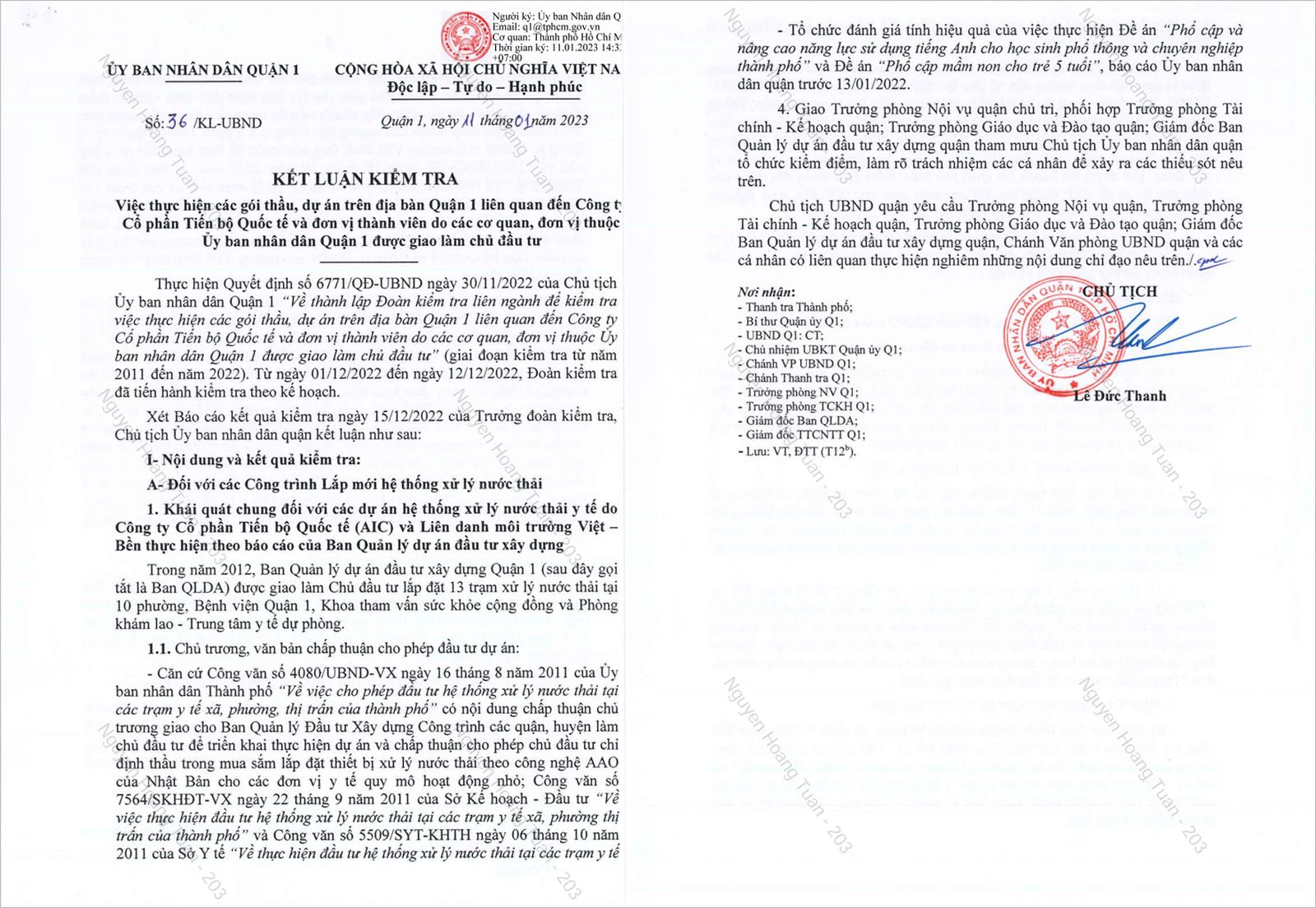 Kết luận kiểm tra của UBND quận 1 chỉ ra nhiều thiếu sót tại các gói thầu, dự án liên quan đến Công ty AIC. Ảnh: CN