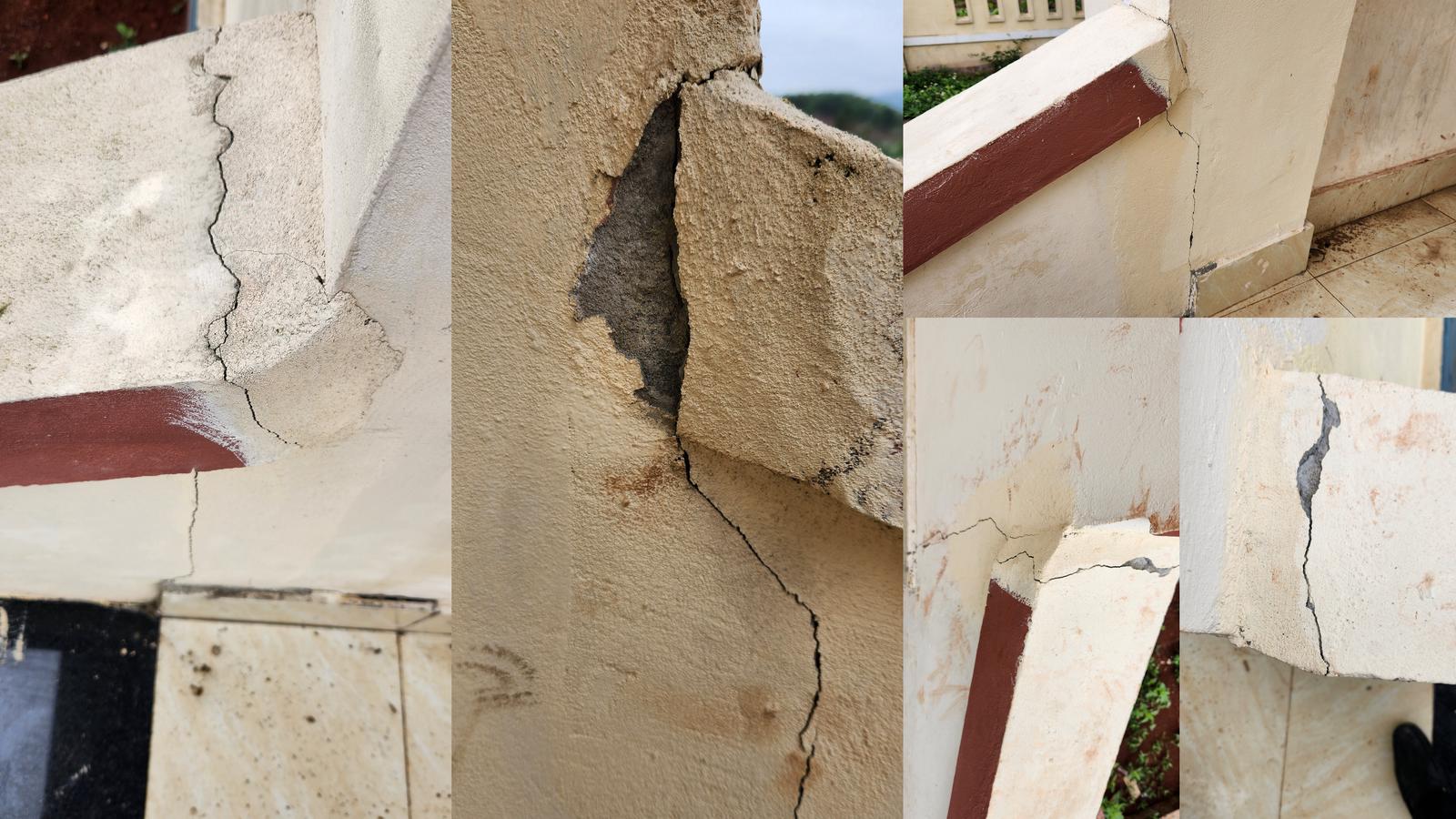 Với năng lực không đáp ứng, giả mạo hồ sơ để trúng thầu thì chất lượng công trình vẫn chưa được xem xét, làm rõ khi hàng loạt vết nứt nghiêm trọng xuất hiện tại Trụ sở làm việc xã Ba Tầng. Ảnh: Minh Tân