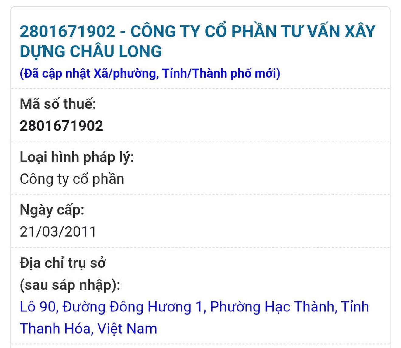 Thực hiện Quyết định số 1969/QĐ-TTTH ngày 8/8/2025 của Thanh tra tỉnh Thanh Hóa, Đoàn Thanh tra tiến hành thanh tra việc chấp hành chính sách, pháp luật về thuế tại 4 doanh nghiệp trên địa bàn, trong đó có Công ty Châu Long, trụ sở tại phường Hạc Thành, tỉnh Thanh Hóa.