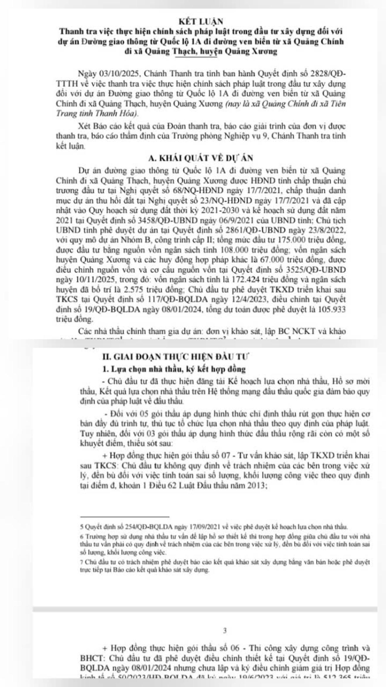 Kết luận của Thanh tra tỉnh Thanh Hóa chỉ ra nhiều sai phạm trong đầu tư dự án đường giao thông từ Quốc lộ 1A đi đường ven biển Quảng Xương. Ảnh: Văn Thanh
