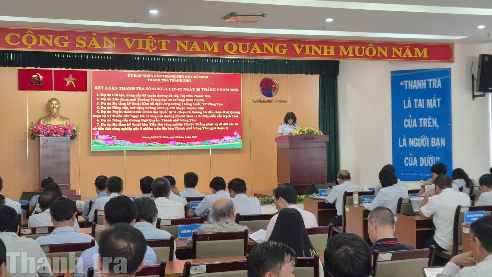 Thực hiện Kế hoạch số 1505/KH-TTCP của Thanh tra Chính phủ và chỉ đạo của UBND Thành phố Hồ Chí Minh, từ cuối tháng 7 đến tháng 9/2025, Thanh tra Thành phố Hồ Chí Minh đã tổ chức thanh tra chuyên đề 7 công trình, dự án có khó khăn, vướng mắc, chậm tiến độ, tồn đọng kéo dài, hiệu quả thấp, nguy cơ gây thất thoát, lãng phí trên địa bàn tỉnh Bà Rịa - Vũng Tàu (cũ), nay thuộc Thành phố Hồ Chí Minh.