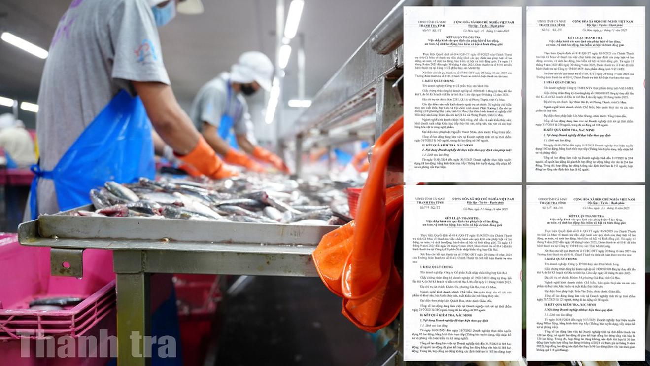 (Thanh tra) - Thanh tra tỉnh Cà Mau vừa công khai 4 kết luận thanh tra liên quan đến việc chấp hành các quy định pháp luật về lao động, an toàn, vệ sinh lao động, bảo hiểm xã hội (BHXH) và bình đẳng giới. 4 doanh nghiệp thủy sản được thanh tra gồm Công ty CP Thủy sản Minh Hải, Công ty CP Xuất nhập khẩu tổng hợp Giá Rai, Công ty TNHH Thủy sản Thái Minh Long và Công ty TNHH MTV Thực phẩm đông lạnh Việt I-MEI.