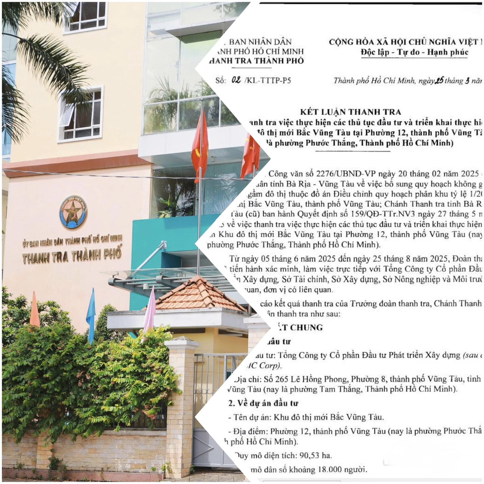 (Thanh tra) - Thanh tra TPHCM vừa ban hành kết luận thanh tra toàn diện việc thực hiện các thủ tục đầu tư, quy hoạch và triển khai Dự án Khu đô thị mới Bắc Vũng Tàu tại phường Phước Thắng (trước đây là Phường 12, TP Vũng Tàu). Kết luận chỉ ra hàng loạt tồn tại, hạn chế và vướng mắc kéo dài nhiều năm.