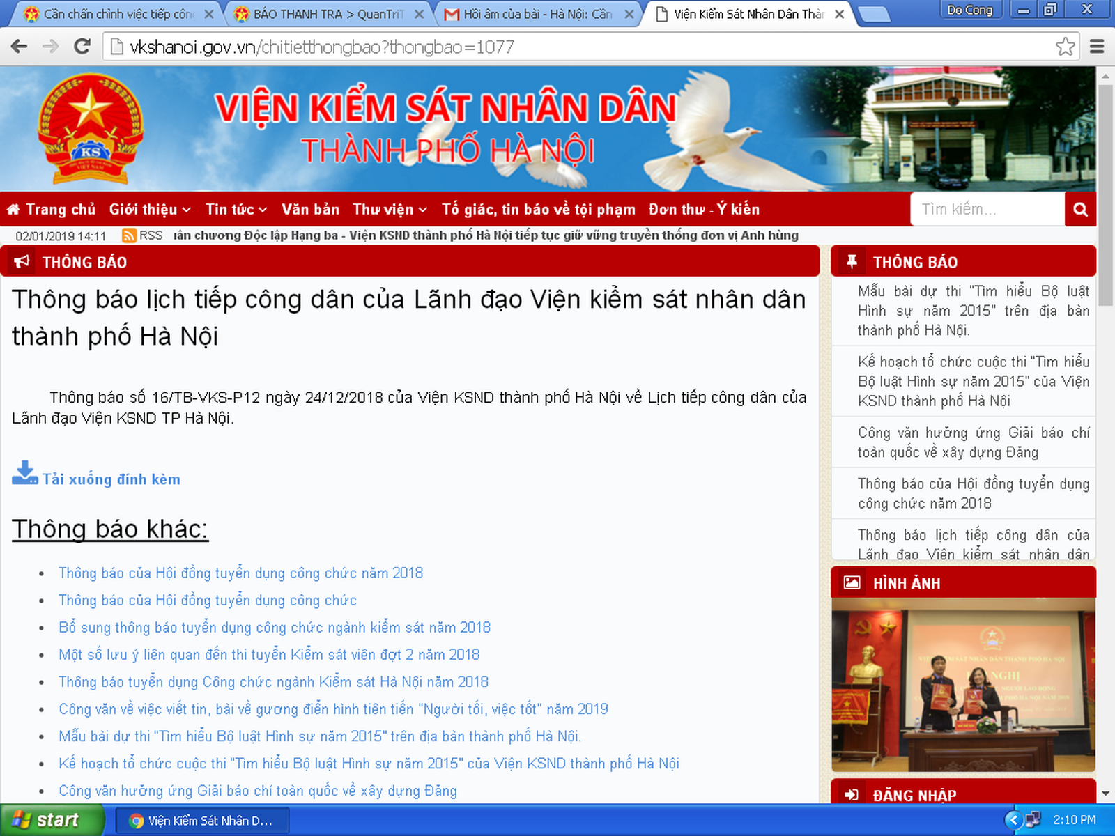 Viện KSND Hà Nội thông báo lịch tiếp dân định kỳ của lãnh đạo Viện trên Cổng Thông tin điện tử