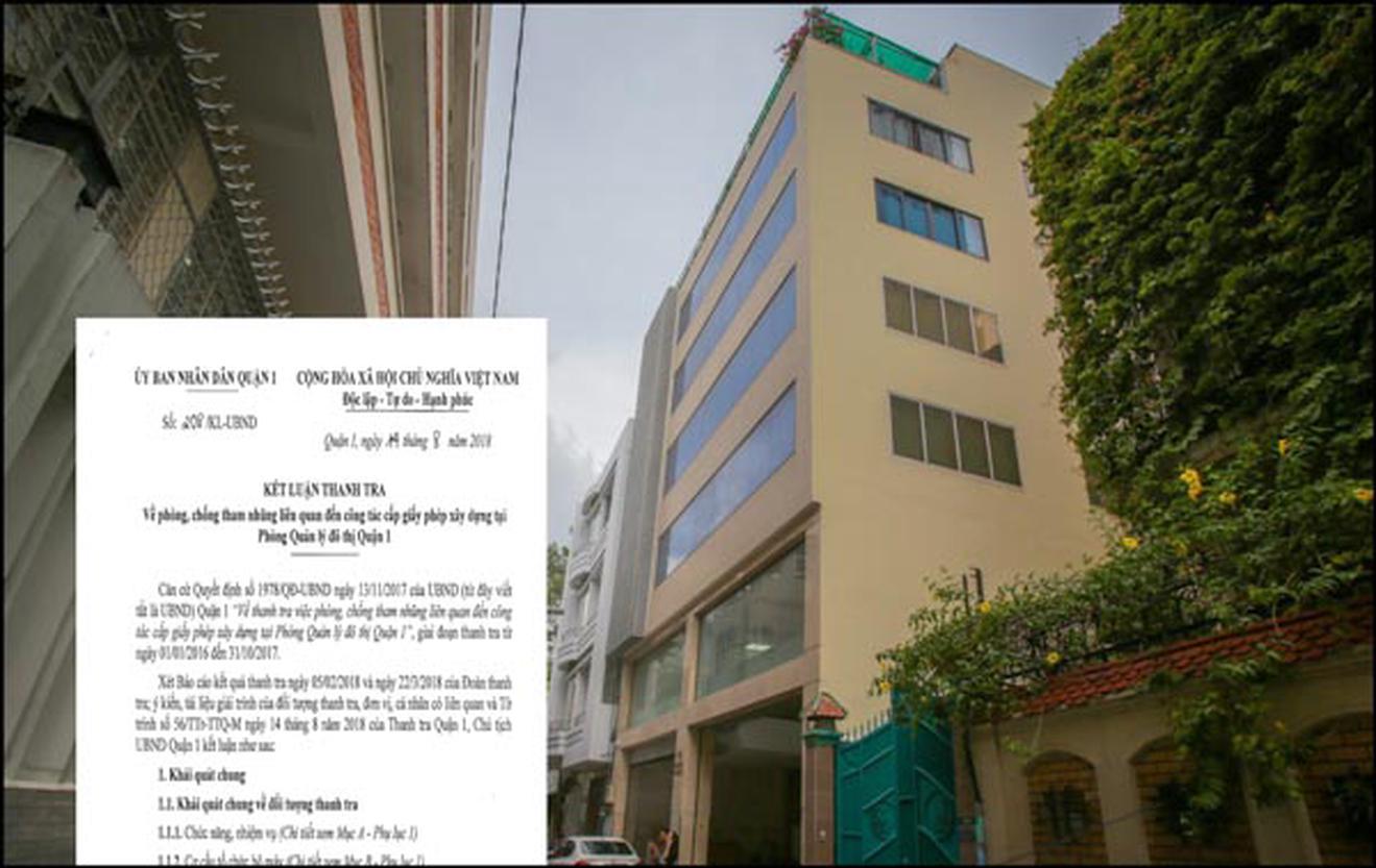 Theo kết luận thanh tra, Phòng QLĐT quận 1 tham mưu cấp GPXD tăng số tầng không đúng quy định ở 5 công trình gồm: 18A/111/3 Nguyễn Thị Minh Khai (5 tầng, tăng 1 tầng), biệt thự tại 90/88A Nguyễn Đình Chiểu (3 tầng, tăng 1 tầng), 41 Nam Kỳ Khởi Nghĩa (7 tầng, tăng 1 tầng), khách sạn số 9-11-13 Lưu Văn Lang (8 tầng, tăng 1 tầng) …