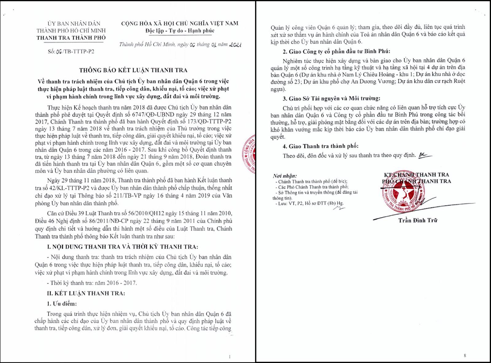 Qua đối chiếu, đã phát hiện giá trị chênh lệch Cty Quản lý KTDV Thủy lợi được hưởng từ việc chuyển nhượng thầu trái phép là hơn 4,7 tỷ đồng. Tháng 10/2018, Thanh tra TP đã ban hành quyết định thu hồi số tiền trên về tài khoản tạm giữ của Thanh tra TP.