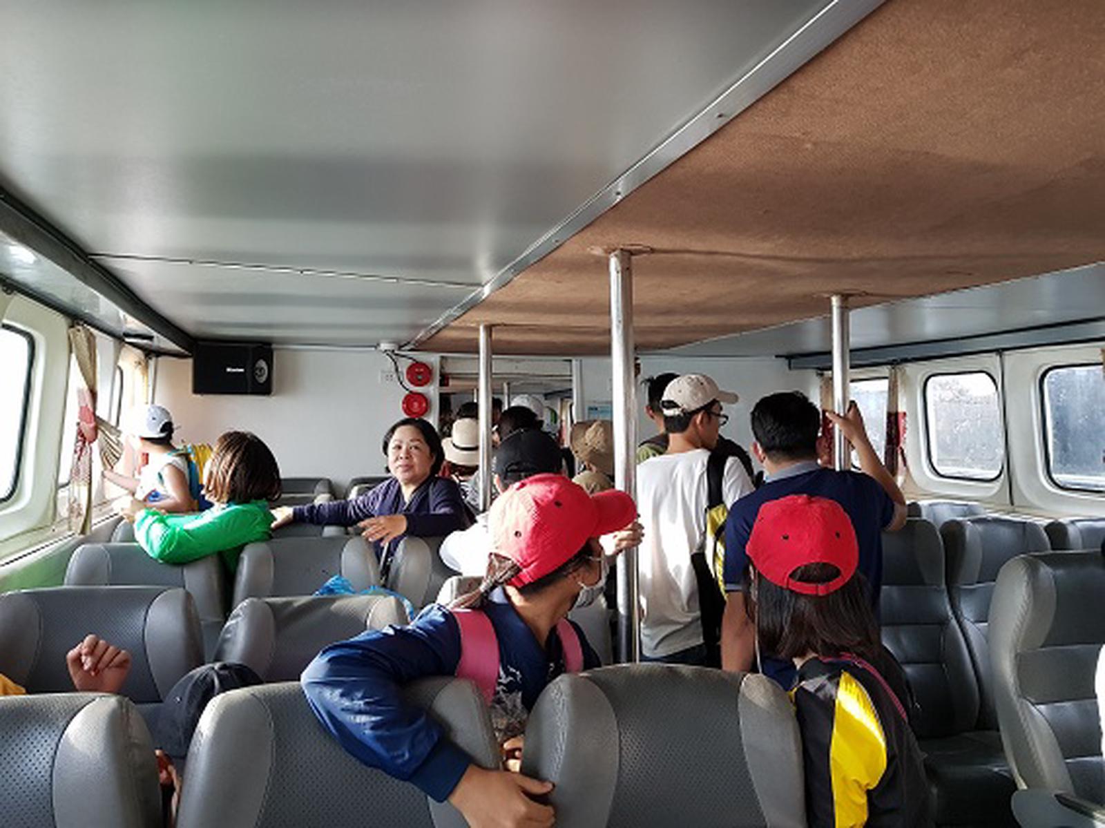 Một tàu cao tốc vận chuyển khách từ bờ ra đảo (địa bàn Quảng Ngãi) không trang bị áo phao an toàn. Ảnh: O.H