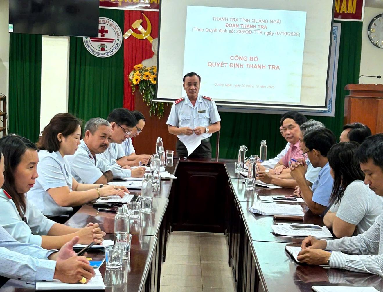 Đoàn công bố quyết định thanh tra Bệnh viện Tâm thần Quảng Ngãi (tháng 10/2025). Ảnh: Ngọc Duyên