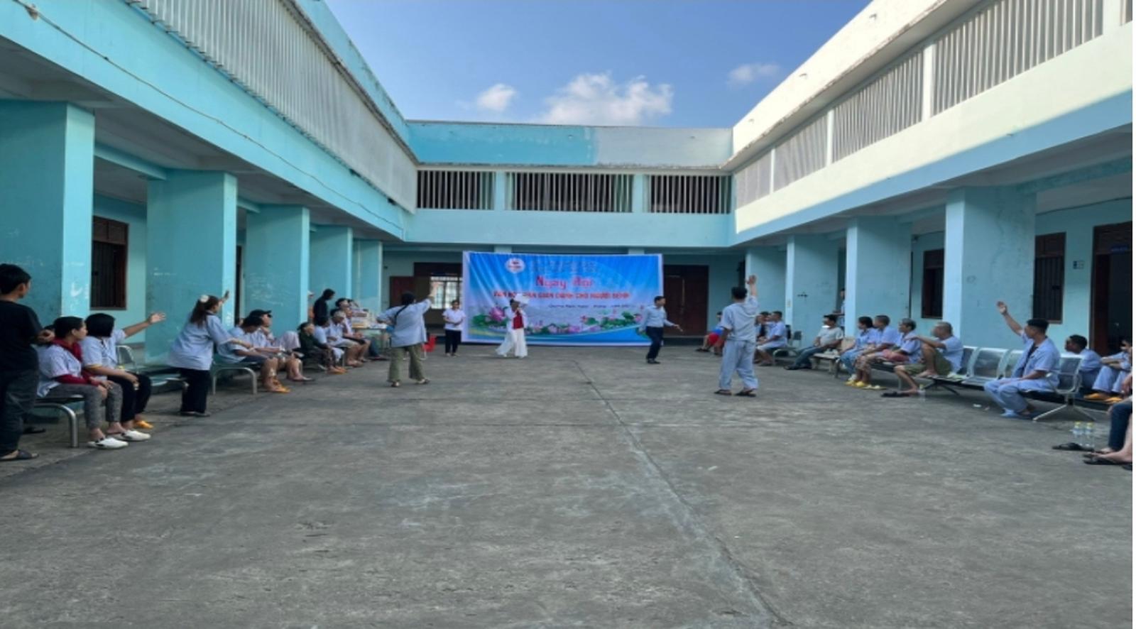 Bệnh viện Tâm thần Quảng Ngãi tổ chức trò chơi dân gian cho người bệnh. Ảnh: BVTTQN