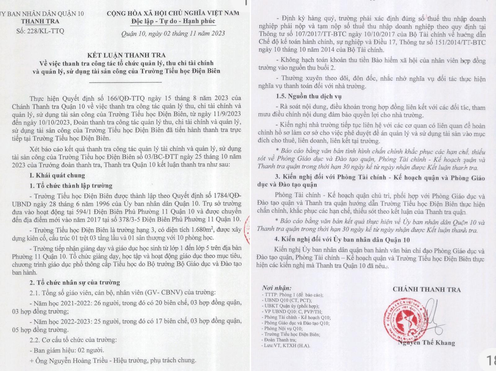 Kết luận thanh tra của Thanh tra quận 10. Ảnh: Thu Huyền