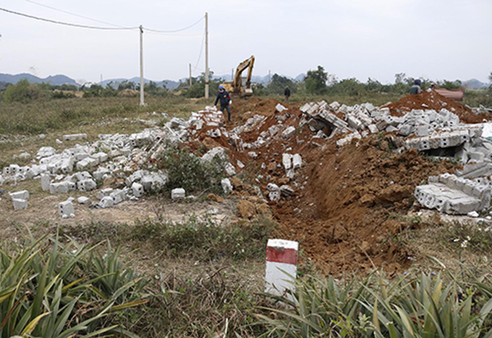 Sáng ngày 11/1/2021, UBND huyện Hà Trung tổ chức cưỡng chế, thu hồi đất của hộ gia đình ông Hà Công Độ (chồng bà Vũ Thị Miện) tại xã Hà Long để thực hiện dự án xây dựng đường bộ cao tốc Bắc Nam. Ảnh: Thanh Hiên/https://hatrung.thanhhoa.gov.vn