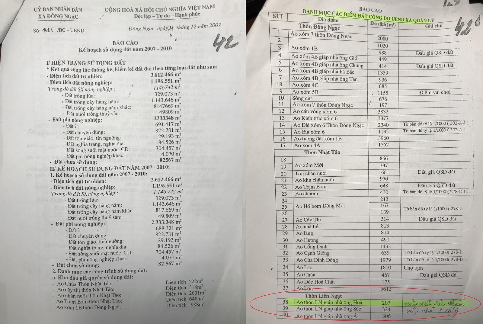 Báo cáo của UBND xã Đông Ngạc năm 2007 trước HĐND xã vẫn ghi nhận thửa đất 55 tờ bản đồ số 15 là đất công do UBND xã quản lý