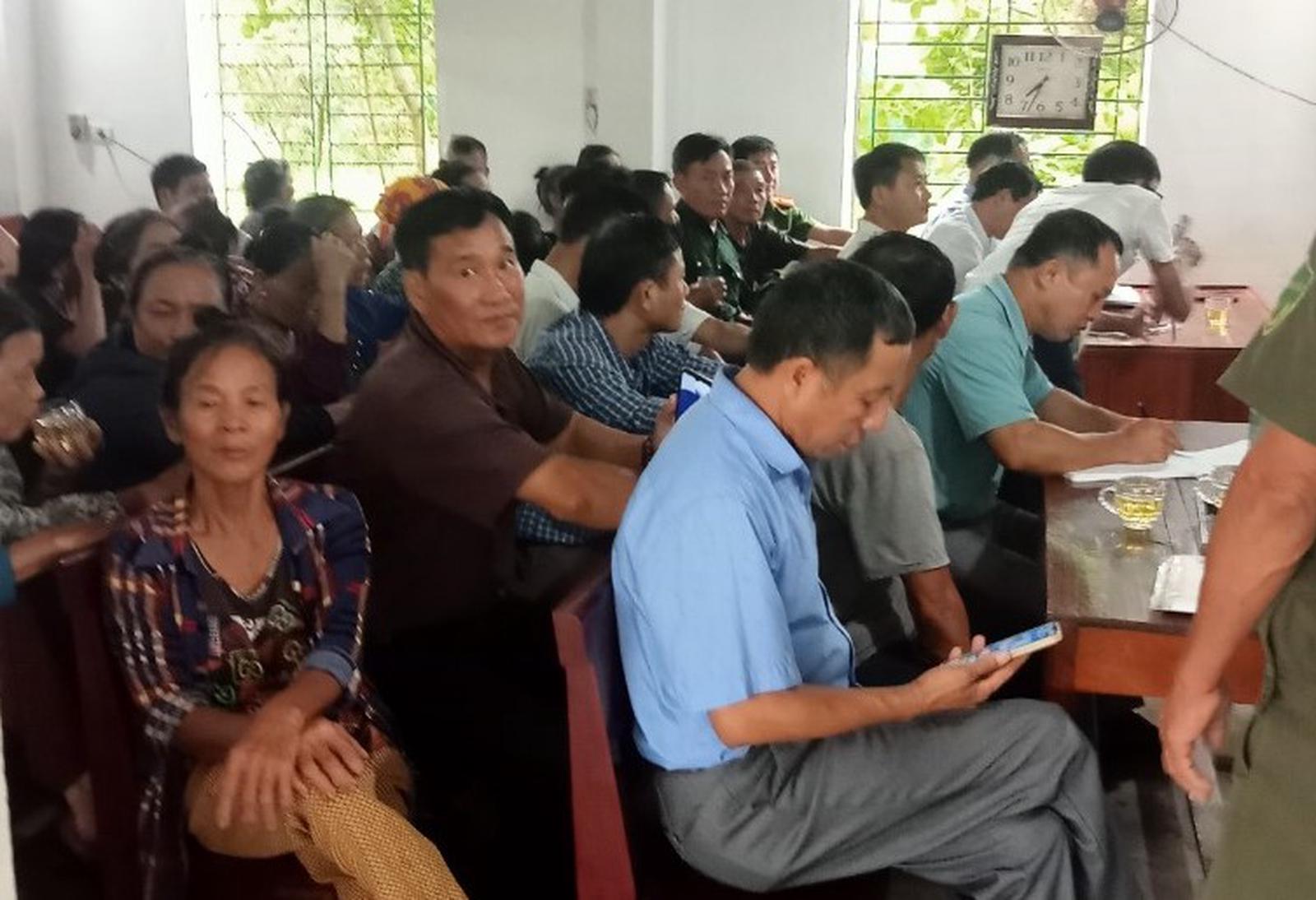 Người dân Xóm 2, xã Thượng Sơn theo dõi công bố kết luận tố cáo đối với Chủ tịch UBND xã Nguyễn Văn Vinh và Bí thư kiêm Xóm trưởng Nguyễn Xuân Dũng. Ảnh: CSCC