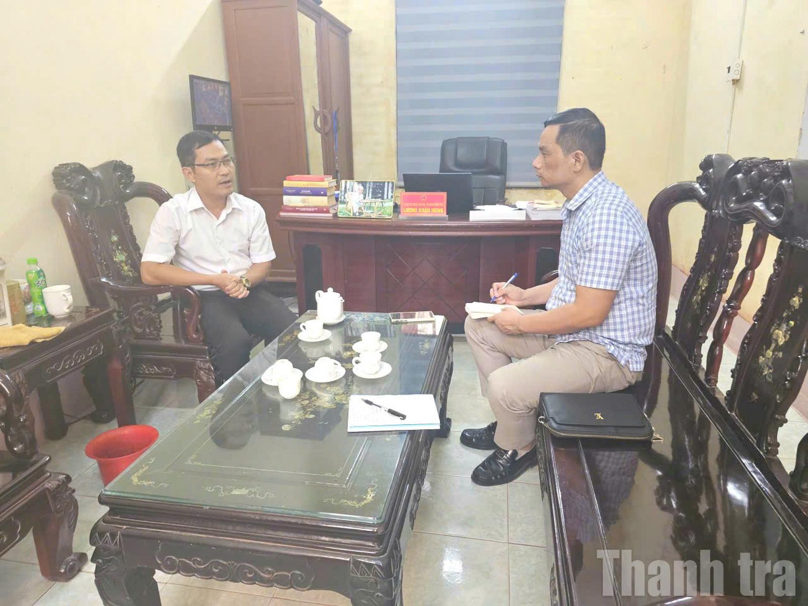 Ông Lương Xuân Hùng, Phó Giám đốc Trung tâm Phục vụ hành chính công xã Hoằng Lộc (trái ảnh) trao đổi với phóng viên Báo Thanh tra. Ảnh: Văn Thanh