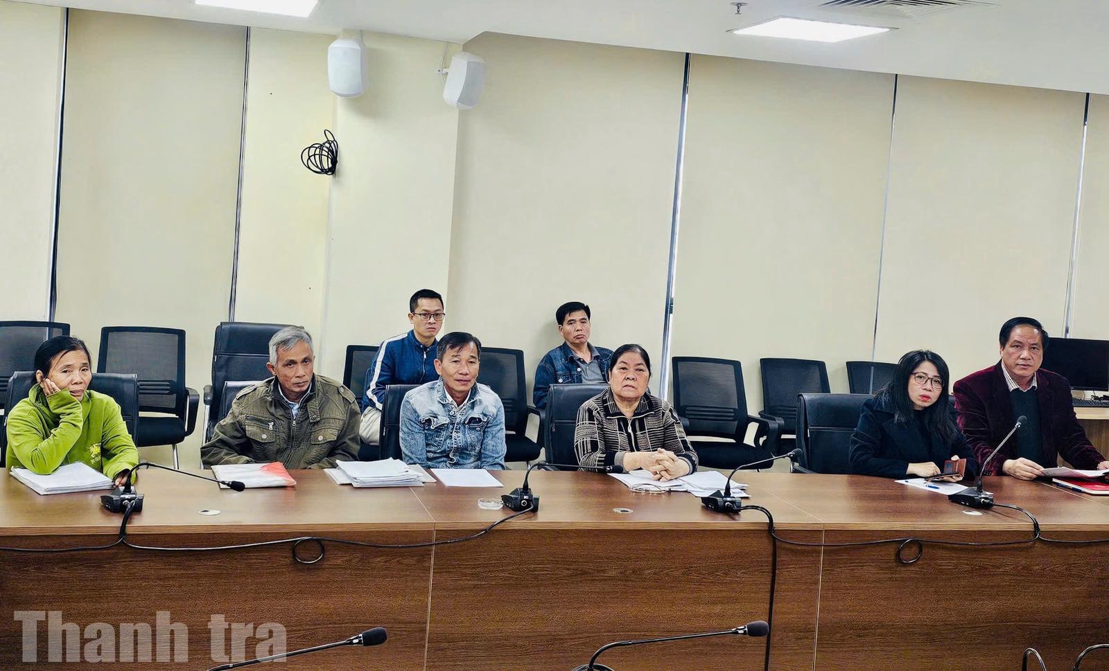 Ông Trần Hồng Cẩn, Phó Vụ trưởng Vụ Dân nguyện và Giám sát, Ủy ban Dân nguyện và Giám sát của Quốc hội (ngoài cùng bên phải); bà Vũ Thị Huệ, Trưởng phòng Tiếp công dân cùng các công dân Đồng Tháp tại Trụ sở Tiếp công dân Trung ương. Ảnh: Lan Anh