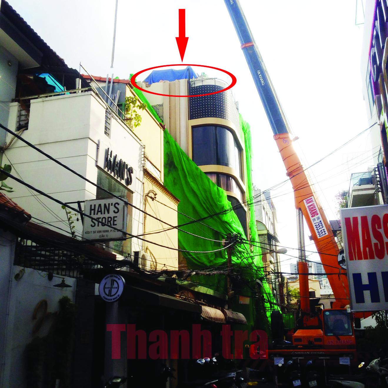 Công trình vi phạm TTXD tại phường 12, quận 10, đang bị cưỡng chế tháo dỡ. Ảnh: NT