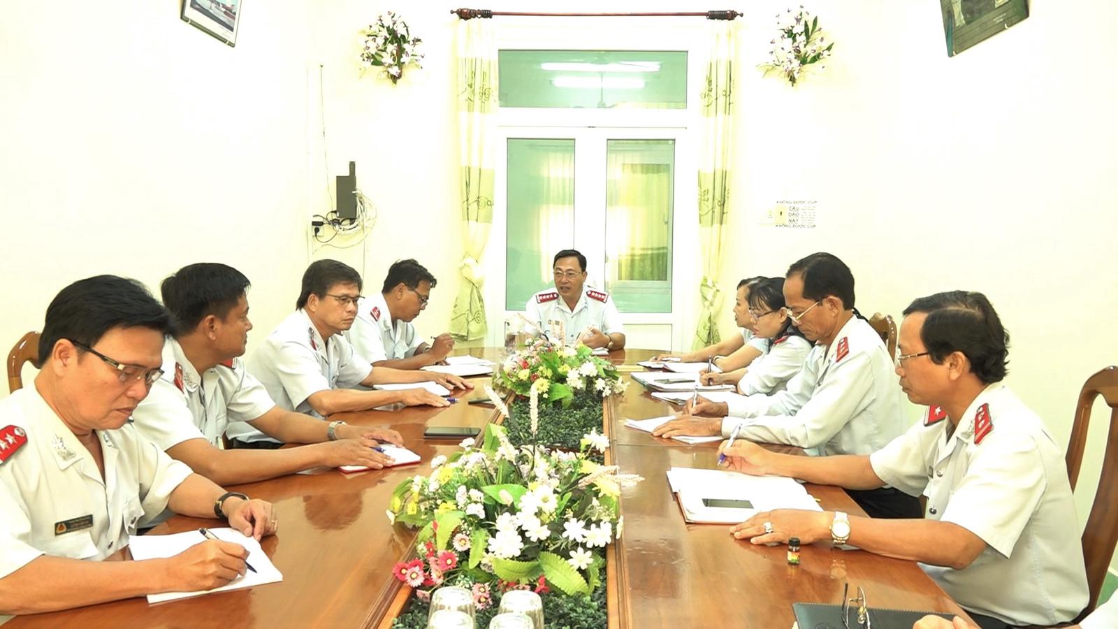 Chánh Thanh tra tỉnh Cà Mau Nguyễn Minh Phụng họp triển khai công việc cùng tập thể lãnh đạo Thanh tra tỉnh. Ảnh: CT