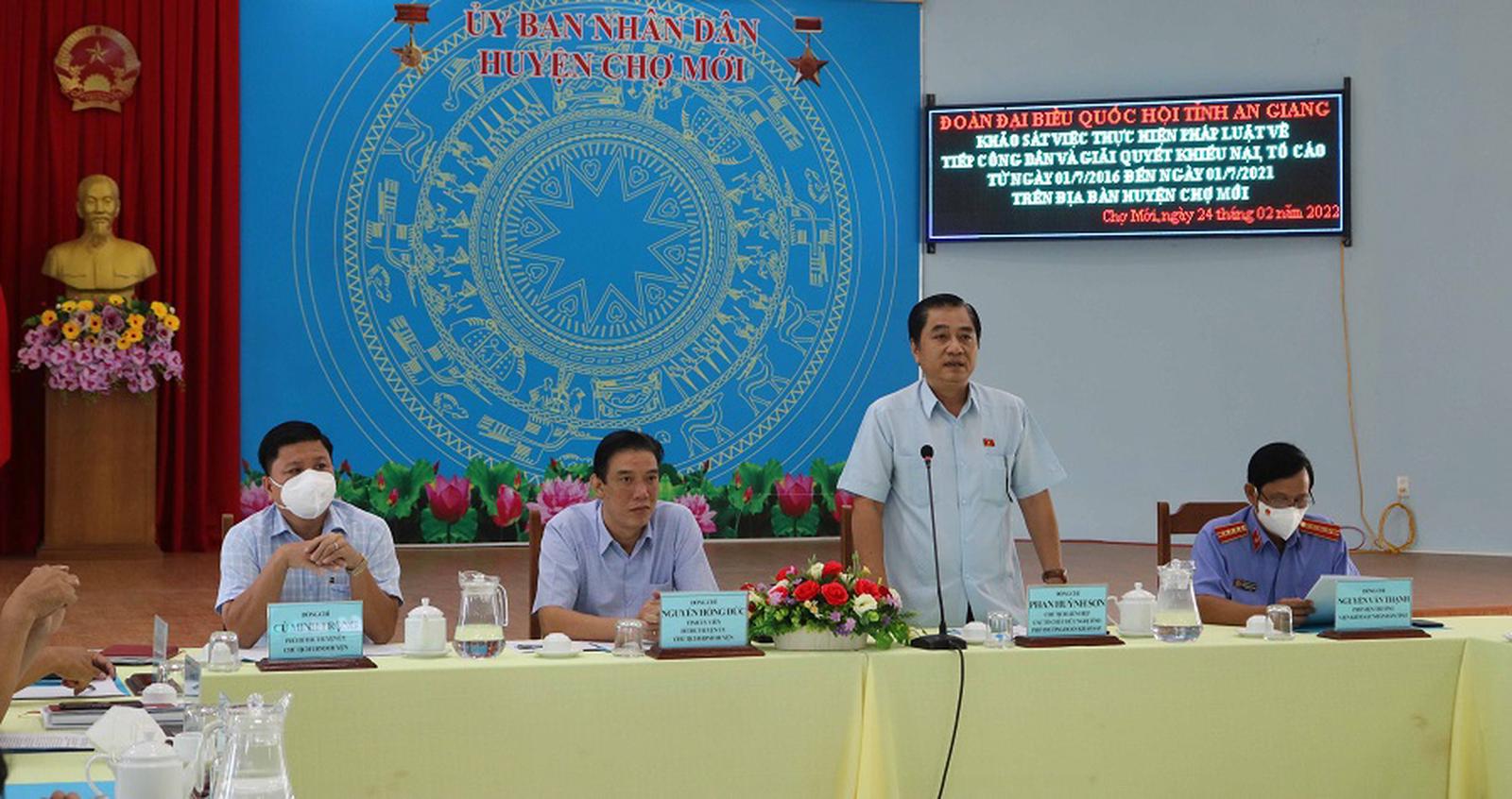 Đoàn Đại biểu Quốc hội tỉnh An Giang khảo sát việc thực hiện pháp luật về tiếp công dân, giải quyết khiếu nại, tố cáo tại UBND huyện Chợ Mới. Ảnh: tuyengiaoangiang.vn