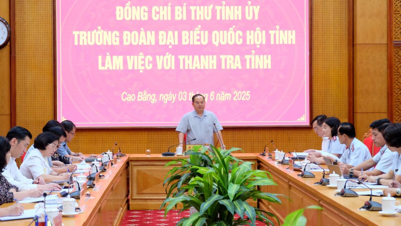 Bí thư Tỉnh uỷ Cao Bằng Quản Minh Cường làm việc với Thanh tra tỉnh. Ảnh: BCB